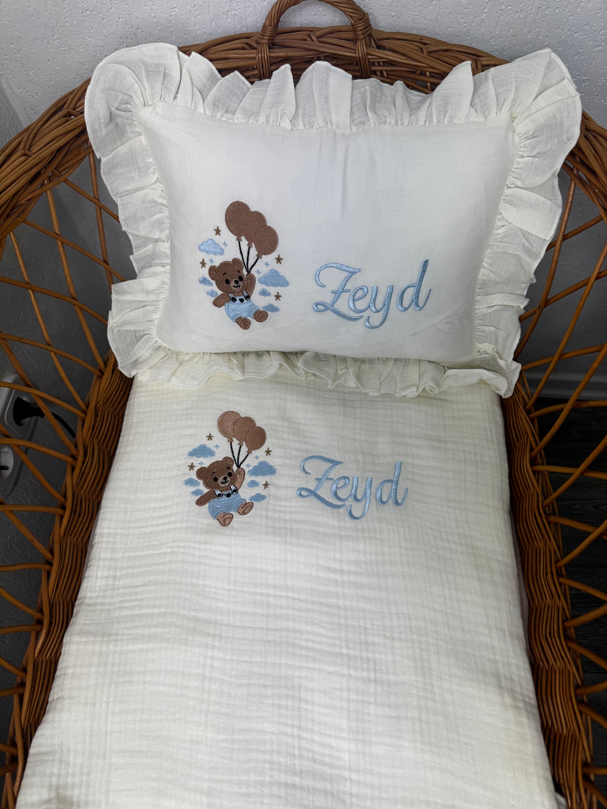 - Personalisierter Kissenbezug mit Namensstickerei
